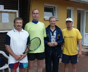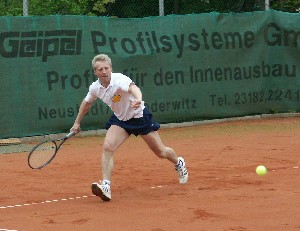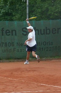 So unter Druck gesetzt verlor A. Götze sein Einzel klar gegen A. Bendick wie nicht anders zu erwarten. Yewgeni Biche allerdings konnte seiner Favoritenrolle nicht gerecht werden und verlor klar gegen S. Eismann mit 6:1 und 6:1, nachdem der Neustädter die Schwäche des Russen auf der Rückhandseite ausmachen und nutzen konnte. Hut ab aber vor dem Schmöllner, der ein beachtlicher Laufpensum zeigte. S. Fritzsche stand nach eigenem Bekunden völlig neben sich und verlor klar mit 3:6 und 1:6 gegen C. Thomas. Hier siegt klar die Routine, Fritzsche fand nie in sein Spiel. M. Pfannenschmidt schließlich musste sich in 3 Sätzen knapp geschlagen geben, nachdem sein Gegner M. Schnelle mitten im Spiel eine Verletzungspause wegen Krämpfen im Oberschenkel nehmen musste.